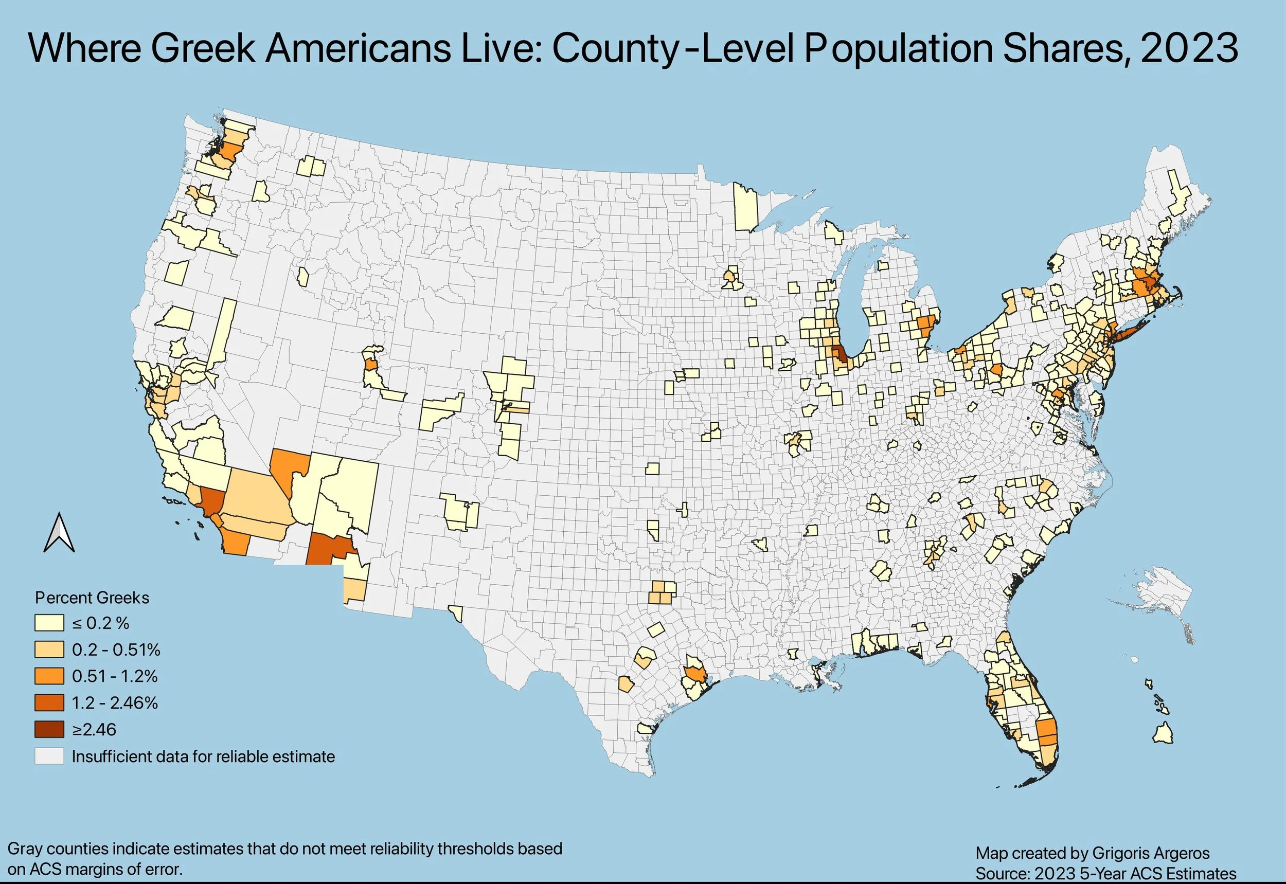 Where Greek Americans Live: County Level Population Shares, 2023